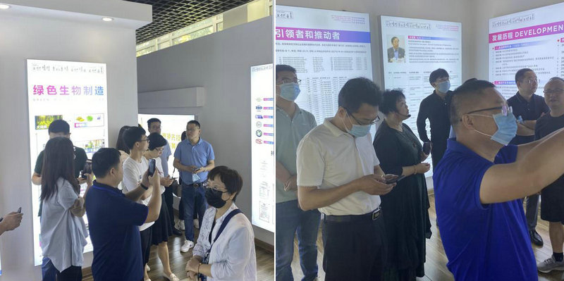 在绿色生物制造展厅,与会嘉宾对公司绿色循环发展模式表现出巨大兴趣,纷纷拍照留念。