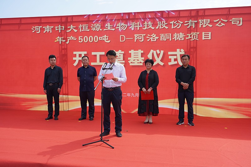 D-阿洛酮糖项目开工奠基仪式圆满完成 作者:安博平台 来源: 日期:2022-09-05 08:54:14 9月1日安博平台公司举行D-阿洛酮糖项目开工奠基仪式,项目总投资1.6个亿,建设周期8个月。临颍县县委副书记、县长李俊伟、县委常委李红伟、经开区管委会副主任邢培忠、安博平台董事长文雁君出席仪式并培土奠基。安博平台董事长文雁君介绍项目情况临颍县县委副书记、县长李俊伟致辞仪式最后众领导共同为D-阿洛酮糖项目培土奠基 关键词: