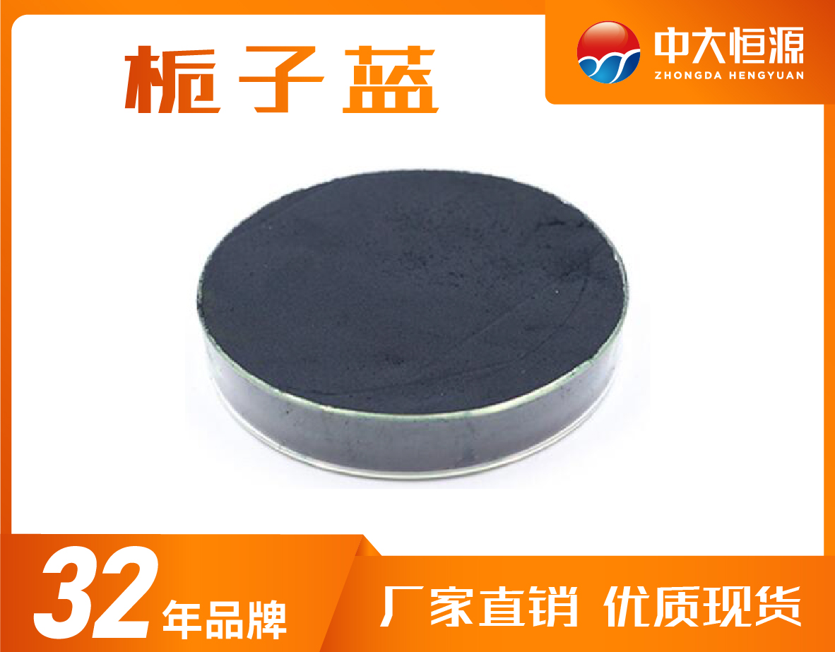 栀子蓝是利用栀子果中栀子甙,经过酶解、发酵、精制等工艺制得。深蓝色粉末,易溶于水,不溶于油脂。水溶液呈鲜亮蓝色,色调不受pH影响,pH4.0-10.0色调稳定,pH<3.0易出现沉淀(普通),pH2.5-4.0不沉淀(耐酸性)。对蛋白质染色力强,光稳定性一般。