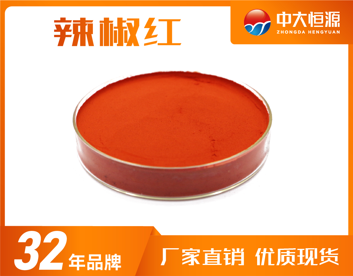 辣椒红以茄科植物辣椒的干燥果皮为原料,经萃取,精制而成,并采用特有脱味技术和分离技术得到油溶性好、风味纯净、不溶物少、品质稳定的油溶辣椒红产品;采用微囊化制剂技术对辣椒红进行乳化包埋,得到水溶性和耐光性好,稳定性高的水溶辣椒红乳液和粉末。