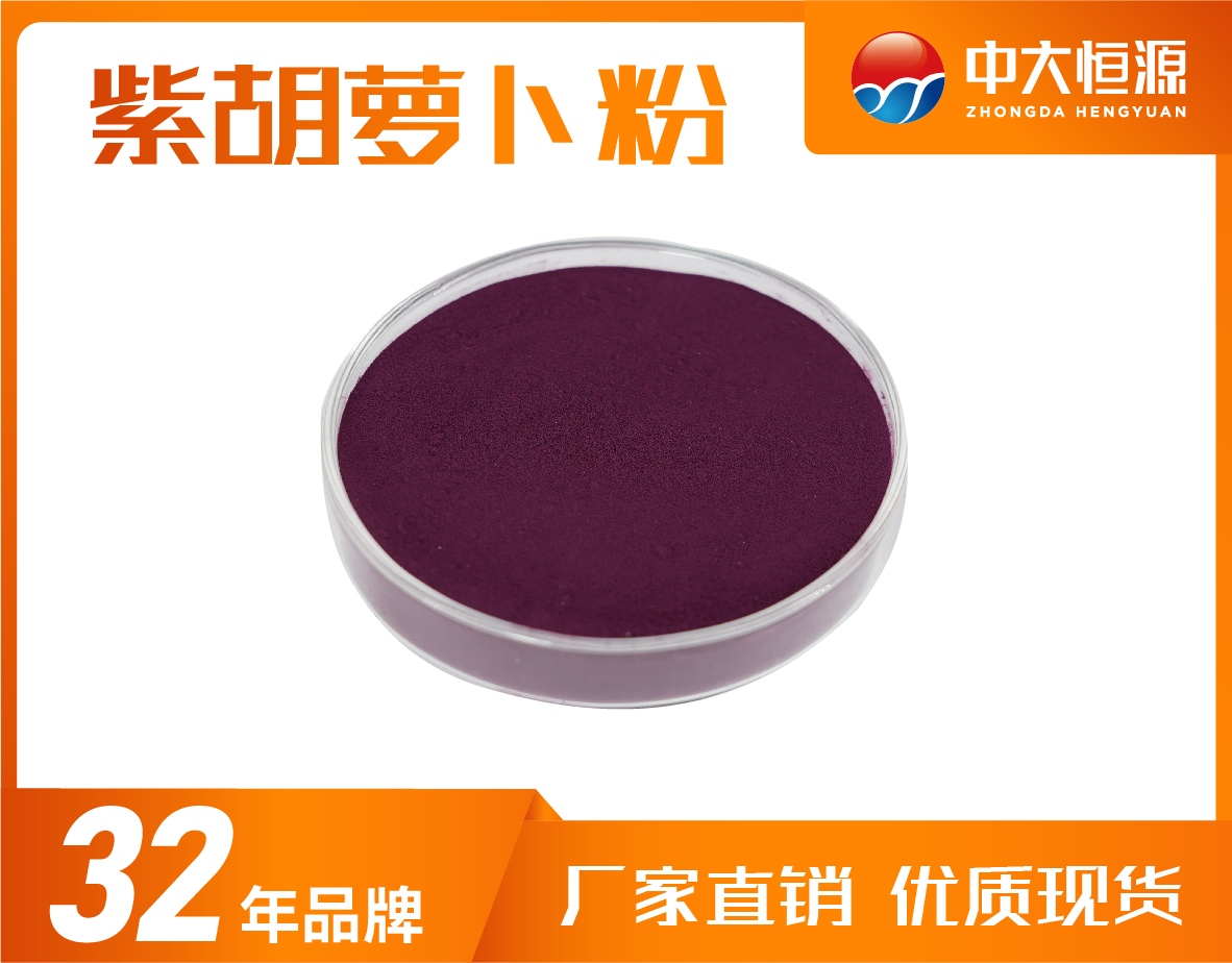 紫胡萝卜粉是一种食品原料,具有紫胡萝卜的风味,富含花青素,可在各食品行业按生产需要适量使用